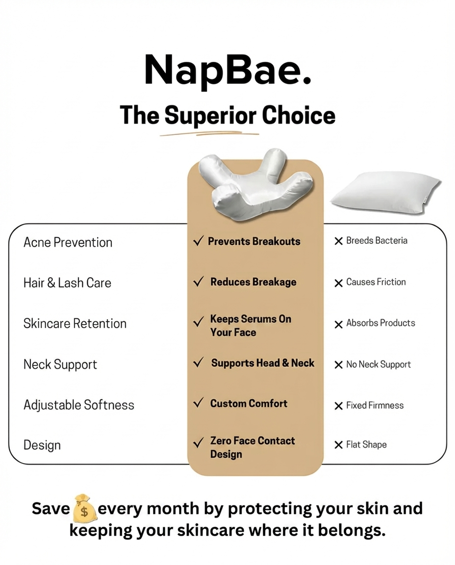 Yes and here's why. A huge portion of facial acne, especially on the cheeks and jawline, is caused by your pillow. Bacteria, oil, and dead skin cells build up on your pillowcase and get pressed back into your pores every night. On top of that, the friction from side sleeping irritates your skin and makes existing breakouts worse. The NapBae Pillow removes both of those triggers completely. Your face never touches the surface, so there's no bacteria transfer and no friction. It won't replace your skincare routine, but it stops your pillow from undoing all the work your products are doing. Most customers see a noticeable difference within 2-3 weeks.