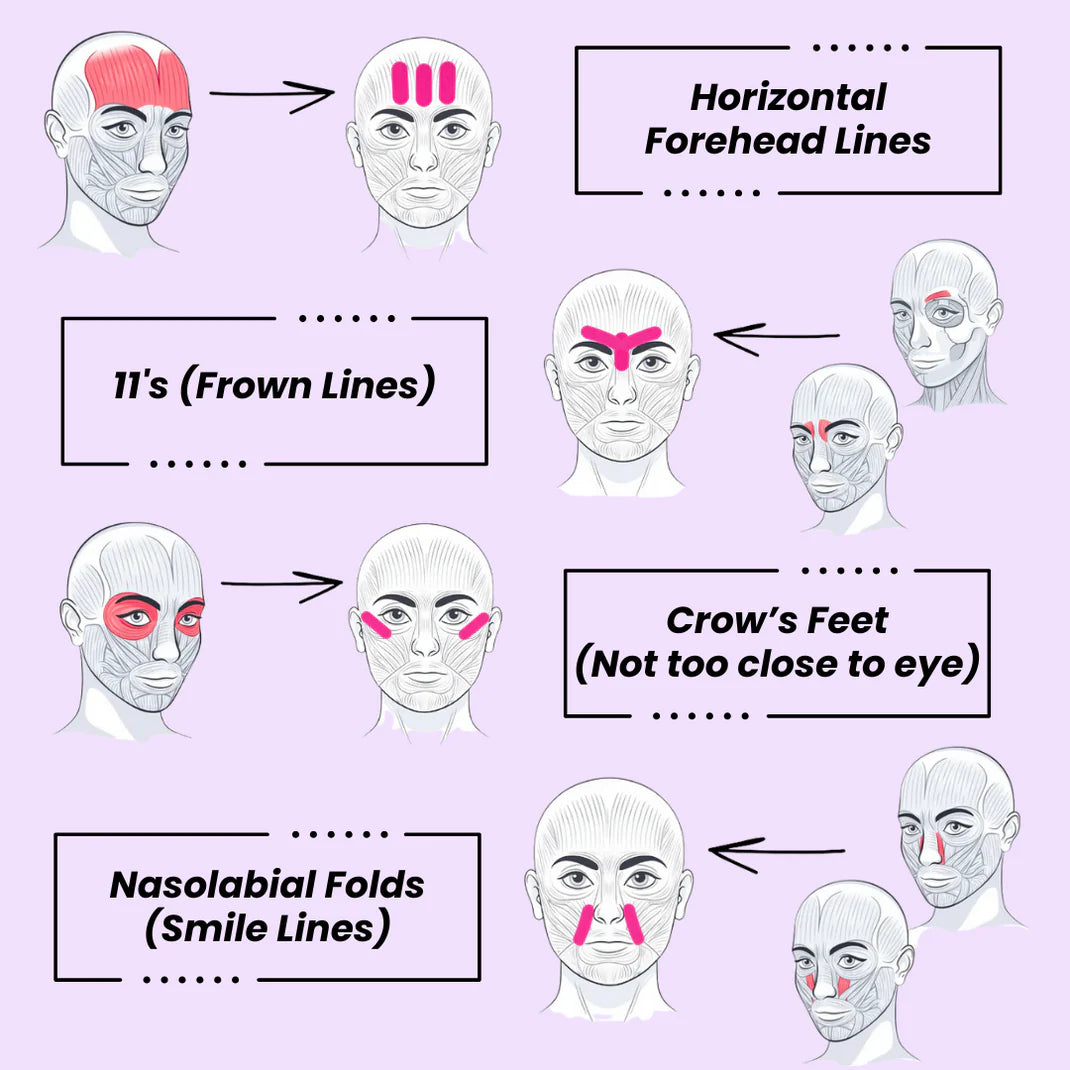 Face taping works by targeting the underlying facial muscles that contribute to expression lines. When applied correctly along the direction of the muscle fibers, the tape helps: